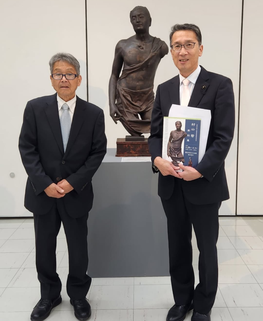 作者の村山さんは豊田市で生まれ、日展に入選されるなど地道に彫刻家の道に取り組まれており、市内には数々の作品が展示されてします。小職も展示、寄贈されている作品があることは承知していましたが、今回、村山さんと直接お会いする機会をいただき、少しお話しもさせていただくことができました。謙虚な印象と彫刻に対する思いの深さが大変印象的でした。